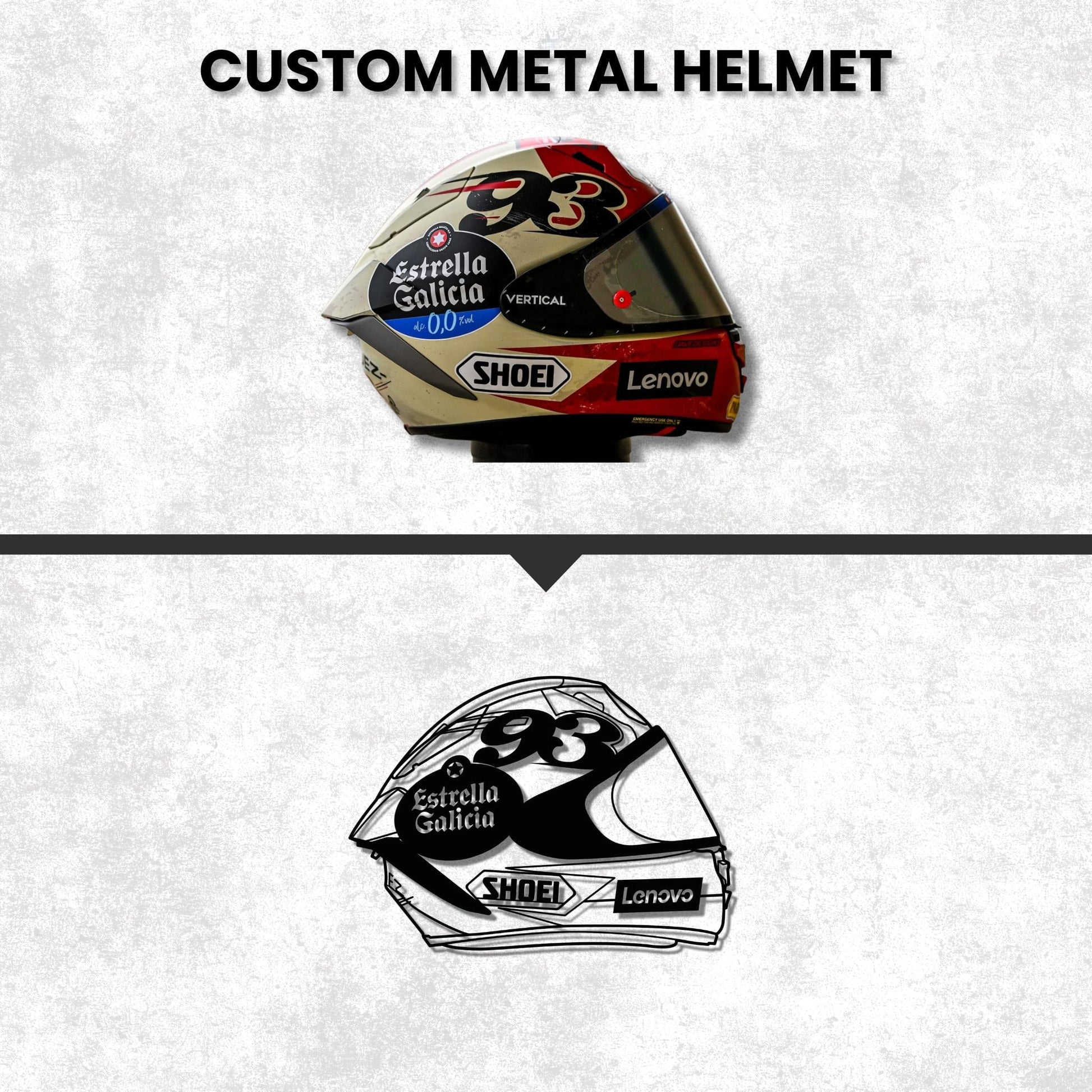As nossas artes de metal conferem um toque único ao espaço de cada entusiasta, seja na garagem ou no quarto. As nossas peças são cortadas a laser a partir de aço com 2 mm de espessura, garantindo assim uma qualidade de topo. Além disso, são polidas à mão e revestidas a pó com um acabamento preto matte, o que resulta num aspeto final extraordinário e numa qualidade duradoura. Todas as nossas peças incluem parafusos que as afastam 1,5cm da parede, criando um efeito 3D. Incluímos também um suporte de fixação centrado na parte traseira do produto para facilitar o processo na hora de pendurar. Cada produto é embalado com cuidado e atenção a todos os detalhes.