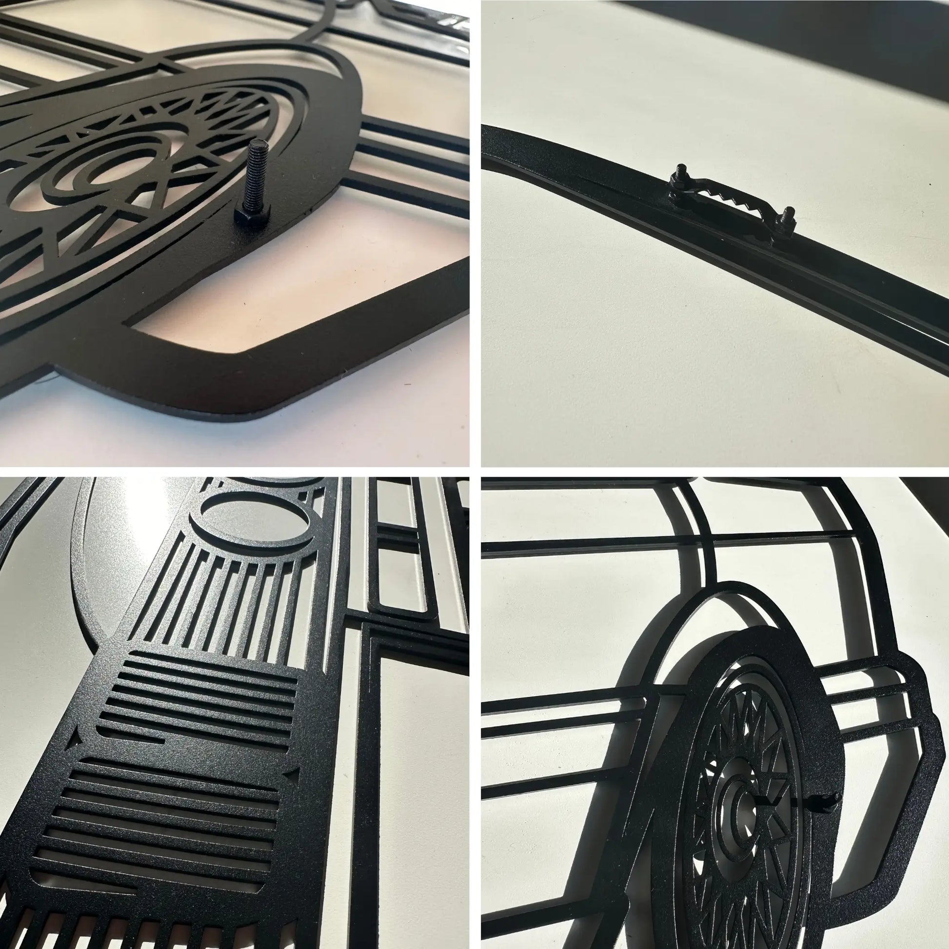 As nossas artes de metal conferem um toque único ao espaço de cada entusiasta, seja na garagem ou no quarto. As nossas peças são cortadas a laser a partir de aço com 2 mm de espessura, garantindo assim uma qualidade de topo. Além disso, são polidas à mão e revestidas a pó com um acabamento preto matte, o que resulta num aspeto final extraordinário e numa qualidade duradoura. Todas as nossas peças incluem parafusos que as afastam 1,5cm da parede, criando um efeito 3D. Incluímos também um suporte de fixação centrado na parte traseira do produto para facilitar o processo na hora de pendurar. Cada produto é embalado com cuidado e atenção a todos os detalhes.